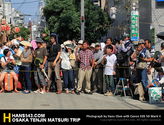 對面封鎖線的攝影同好,看來是準備週全…(對面的位置比較好些,也可以拍進天滿宮…)