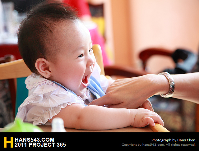 不但不會亂哭(只要不餓著她的話XD),還比較能被我們逗笑了喔~