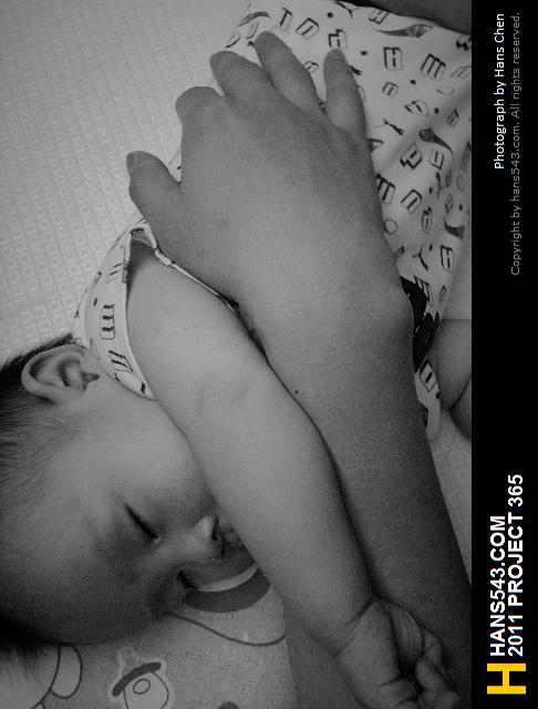 Q比特別喜歡抓住我們的一隻手睡,讓我們剛好可以輕拍他的胸口,好像相當安心的感覺~