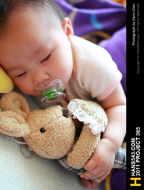 (目前是爸媽的「手」…Q比喜歡抱著我們的手臂入眠)