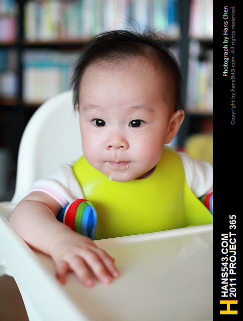 現在的Q比已經習慣在新買用餐椅上吃飯了~(沒辦法亂跑,好餵多了XD)