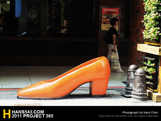 在台北市街頭看到這樣的巨鞋,翰斯特別在那兒等到有行人經過才按下快門.拍下這張照片XD