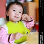 小朋友除了肉排之外(在嘴裡),也要吃蔬菜(在手上),才會健康長大喔~~~