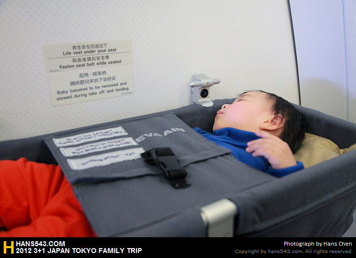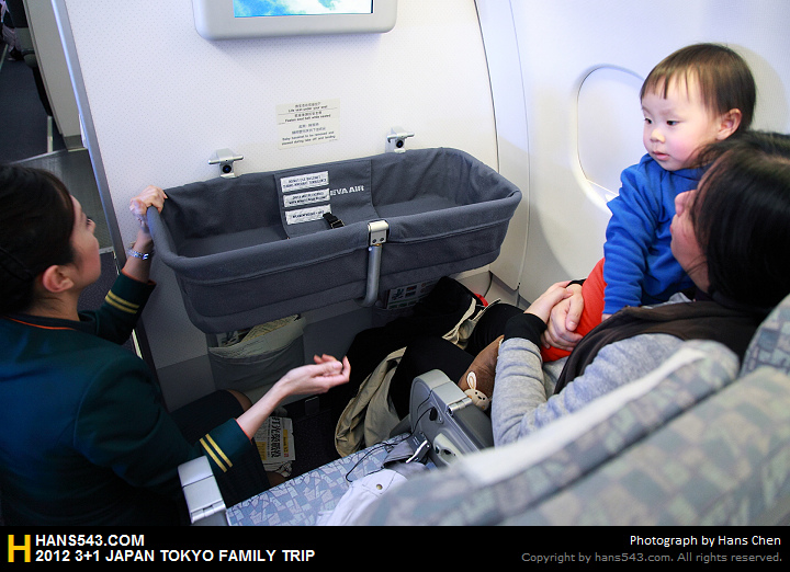 因為第一次沒看過嬰兒簡易床,所以飛行平穩後,就請空姐幫忙架設簡易床