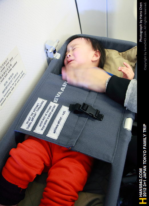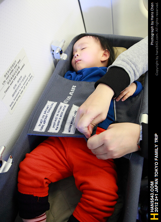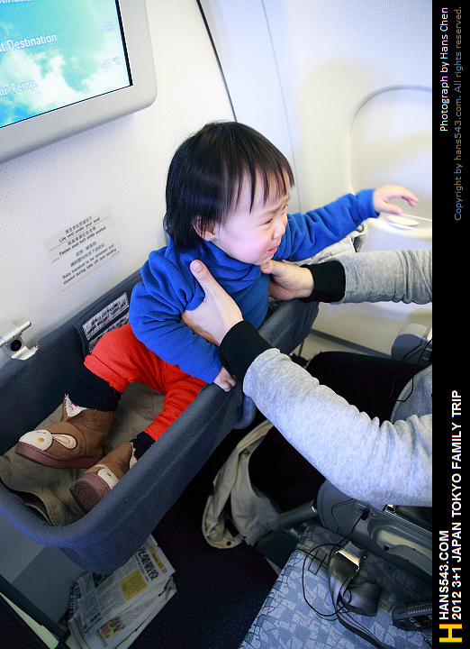 不過這個簡易床不是讓小朋友可以一直坐著的,在飛機起飛及降落時是必需要收起來的,