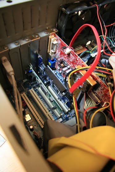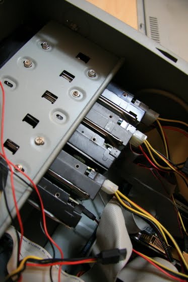 之前這個娛樂中心,因為舊型主機版的IDE介面只有四個,所以包含光碟機、硬碟機,只能接四個…所以原來有兩個光碟機可以對燒的,也放棄了一個,另外三個硬碟,分別是舊的40G(割成兩個槽,分別當系統槽和動物槽(註),掛了就算了)、80G一個(放資料)、120G(放MP3)一個。