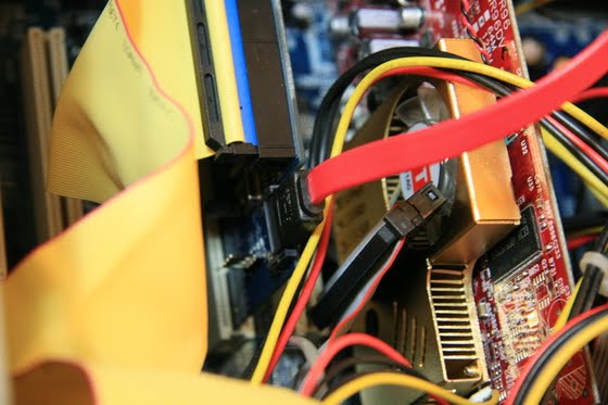 (如下圖,最左側的就是SATA硬碟,不過可以看到,沒有像右方的IDE硬碟一樣的4PIN電源孔)
