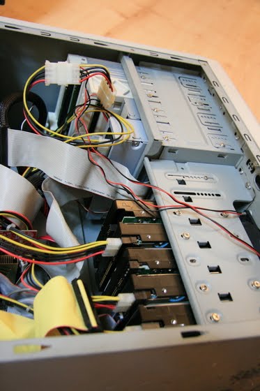 因為好看的影片(是真的影片,不是A版的影片),和好看日劇的體積實在太大了,家中的主機雖原來就安裝了四顆硬碟(待會再來說說原來的硬碟建置方式),還是不夠放@@(某同事提供120G硬碟滿滿的日劇…一次就塞爆了…)