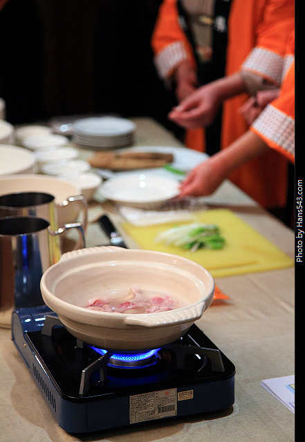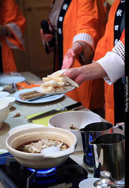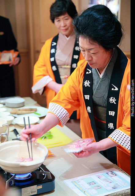 在放食材的時侯,放的順序部分,達人還是要請教一下兩位秋田阿媽,才能做出最道地的米棒火鍋