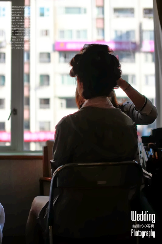 一早就開始化妝準備文定儀式的水新娘,