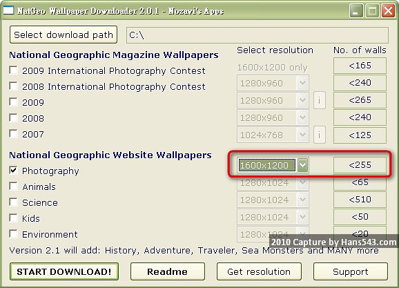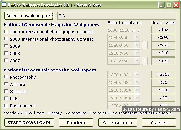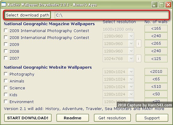 | NatGeo Wallpaper Downloader (EXE) 2.0.1 Licence: Freeware Size: 717.32 KB 官網:http://apps.nozavi.com/downloads?task=viewcategory&catid;=1 官方下載連結:按這裡下載 |