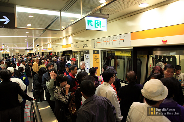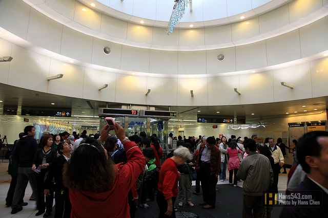 捷運蘆洲線第一天通車的第一個小時,可以看到試乘的人潮非常踴躍~