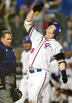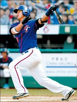 羅國輝在六局下半兩出局揮出逆轉三分砲時的英姿~