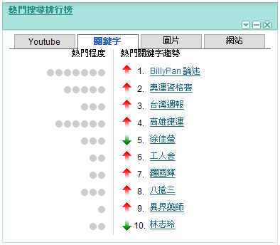 (有圖有真相,下面這張圖是GOOGLE的搜尋排行,