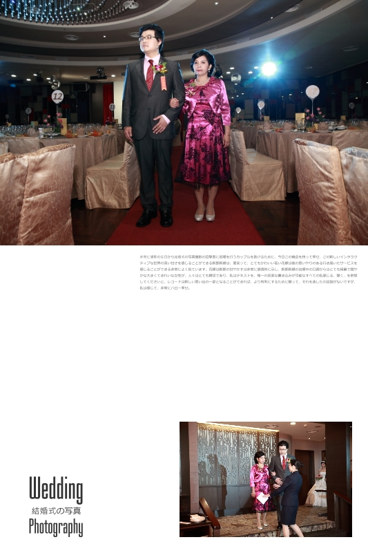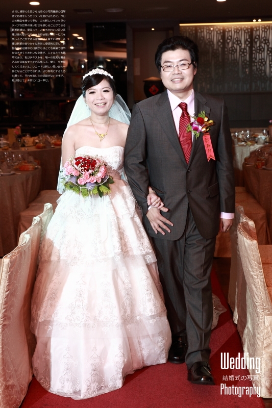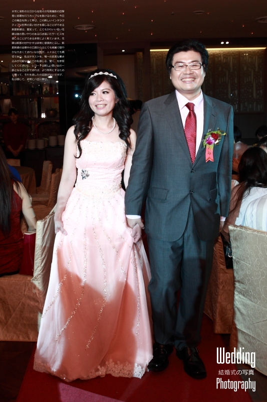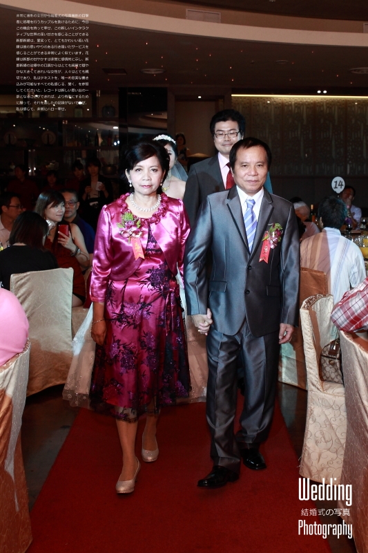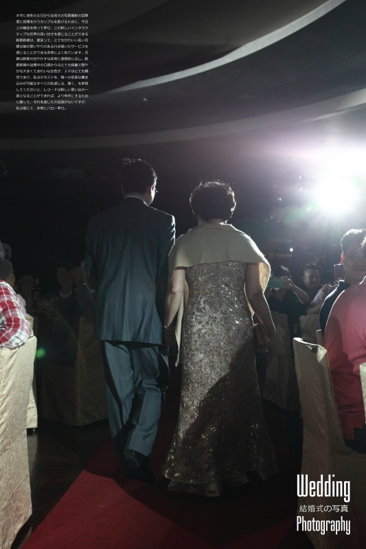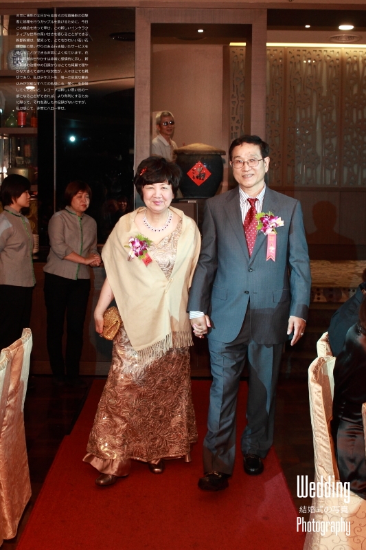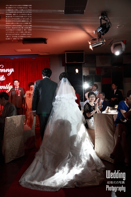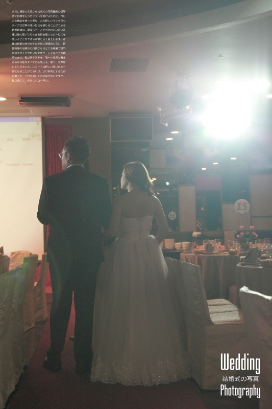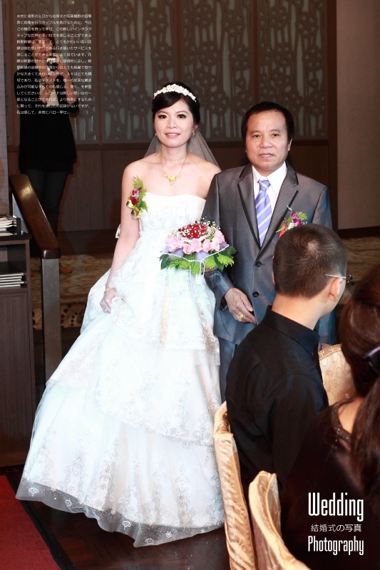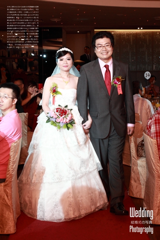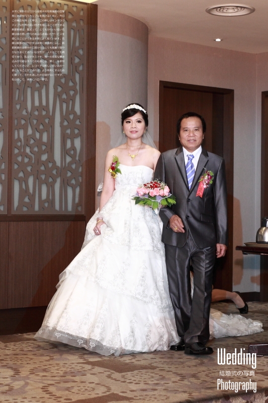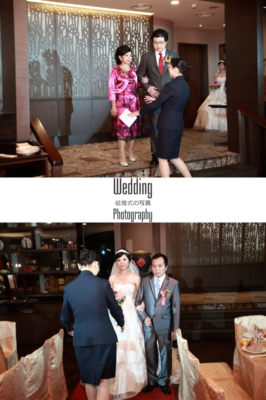 新人的第一次入場,可以看到水新娘的父親,帶領著美麗的水新娘純嘉,走到先入場的帥氣新郎面前,