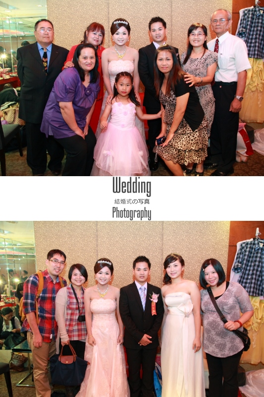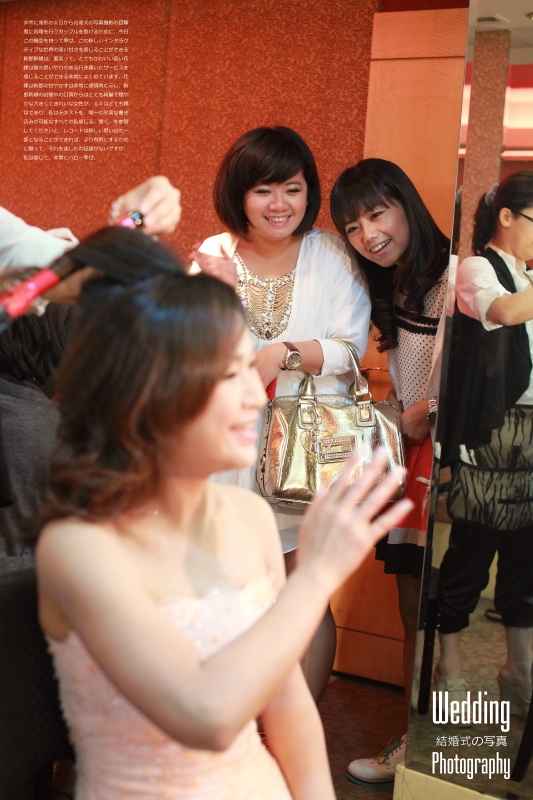 好人緣的美麗新娘,在化妝時就陸陸續續有許許多多親友到新人準備室來探班,頓時笑聲充滿了整個房間。
