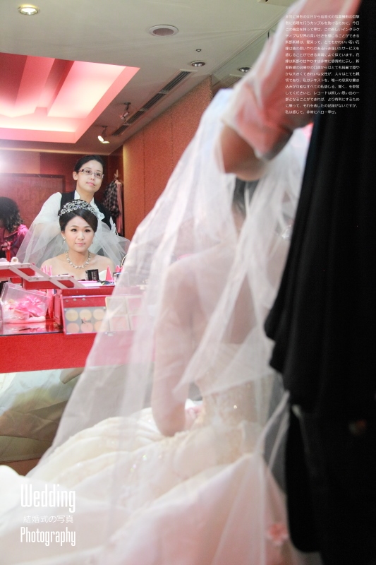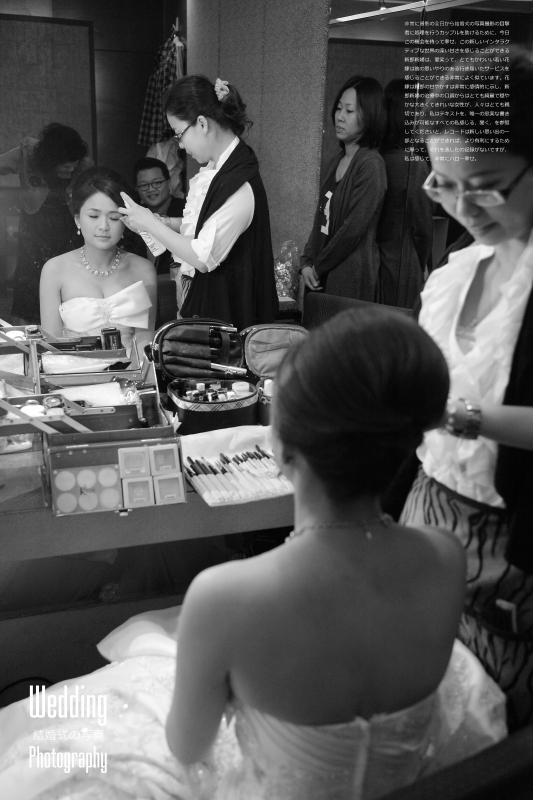 在休息室裡化妝的新娘,探班的親友也是絡繹不絕,美麗新娘子的好人緣由此可見,