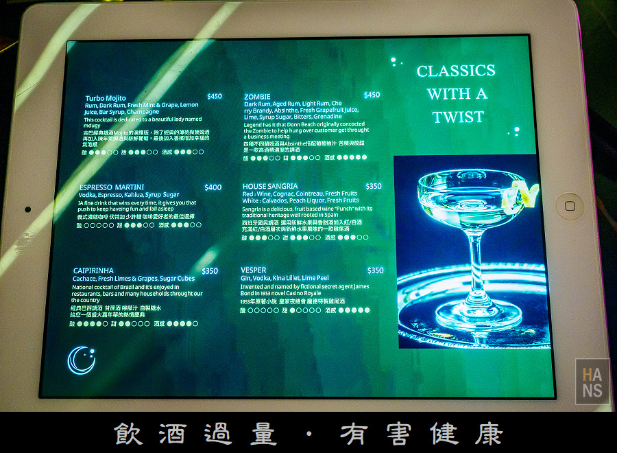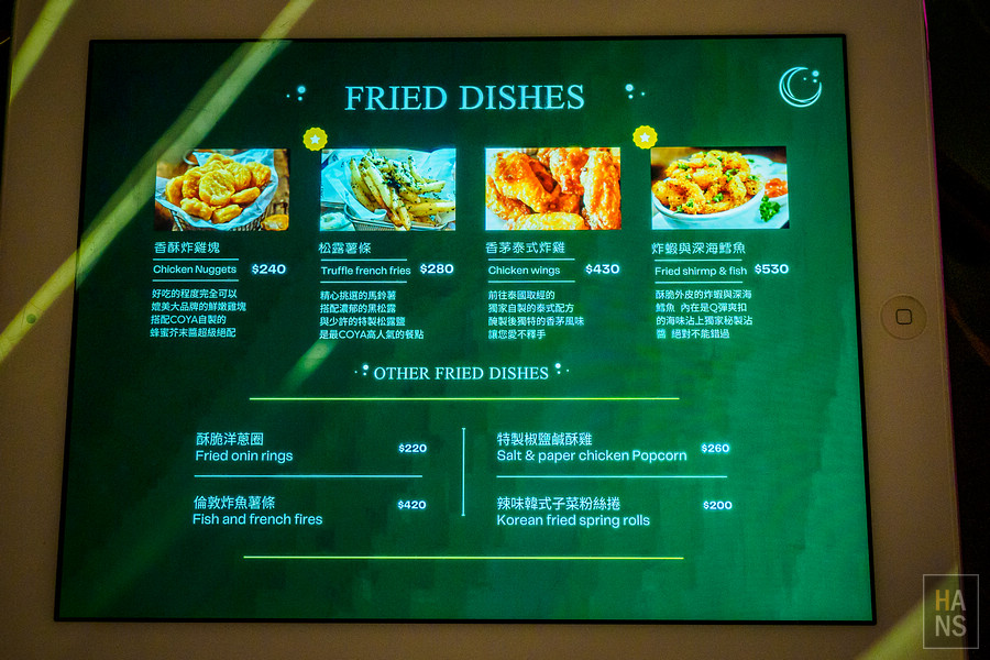COYA Taipei 的菜單是以平板來展示,下面每張圖都可以點開看大一點的照片,可以清楚的了解 COYA Taipei 的菜色與價位。
