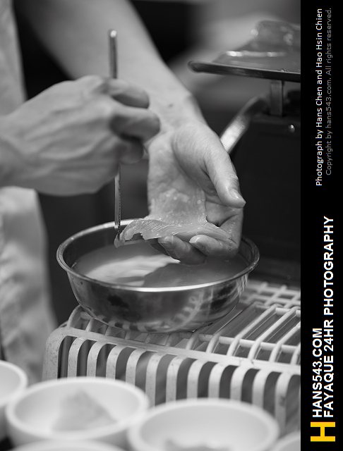 所以,我們跑到了華西街觀光夜市,拍到了正在處理魚翅師傅的手;