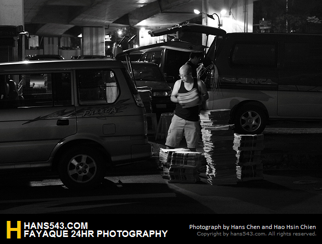最後來到凌晨三點的溫州街與辛亥路口橋下,果然拍到如網友所言的派報工作者,為著自己的夢想辛勤工作著。