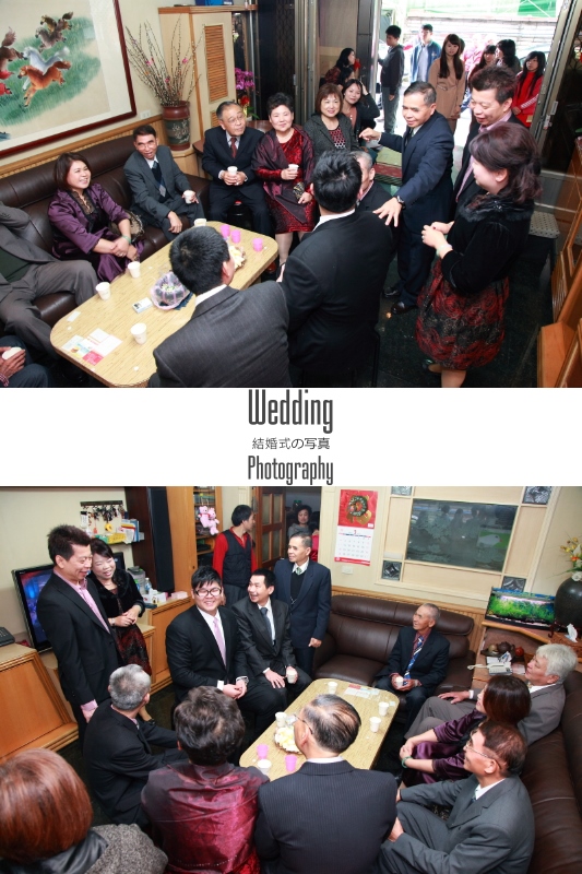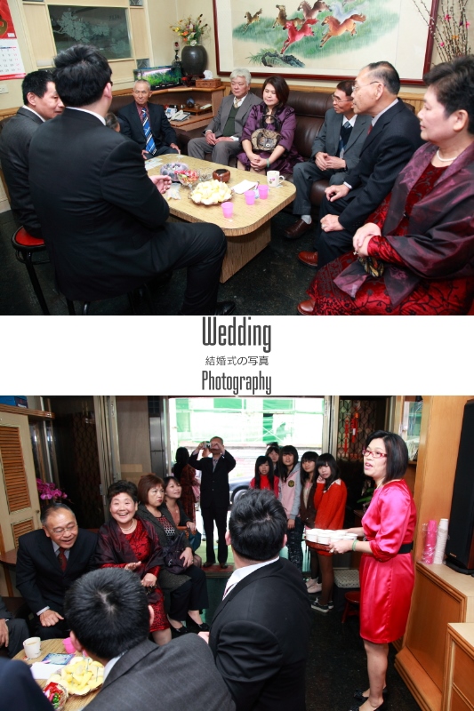 從一開始的新娘奉茶(新郎方依輩份順序坐好,新郎坐在最後一個XD),新郎親友壓紅包回禮,