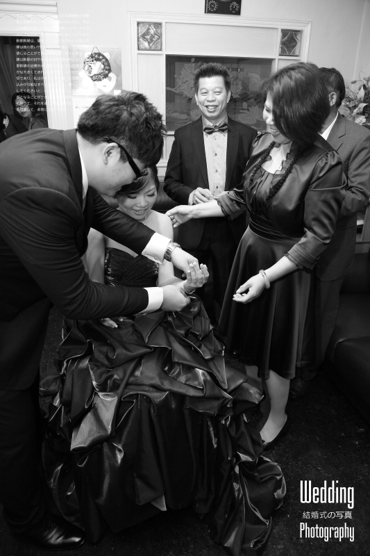 整個文定儀式氣氛輕鬆愉快,新人臉上總是堆滿著笑容,新人親友們也開心的祝福著新人,