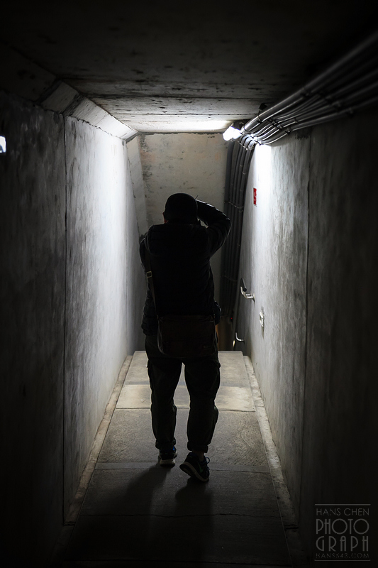 長通道的盡頭是一個繼續往下的樓梯口,前方伙伴剛好拿起相機拍攝同行友人,這樣的畫面很有感覺,我也趕緊拿相機拍了下來。