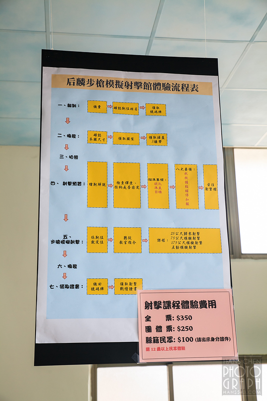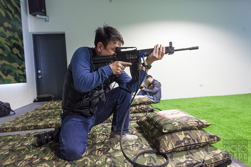 這裡提供的是一套完整的體驗流程,參加體驗的民眾,可先換著迷彩服,並拍下合成照片再參加射擊體驗。最後在射擊體驗完成時,還可以將你的照片和你的射擊成績一起印在你的証書上,算是非常有紀念價值的紀念品。