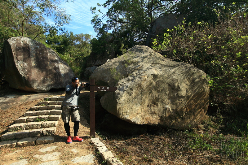 從這裡開始,就會有比較陡的爬升坡度,而且需要爬上自然的巨石而非石階。這對經常登山的朋友應該只是小菜一碟,但對不常登山的朋友來說,攀登過程可能就需要處處小心囉(尤其要注意防滑,這裡若是下著小雨的話,巨石上可能會比較滑,不可不慎)。