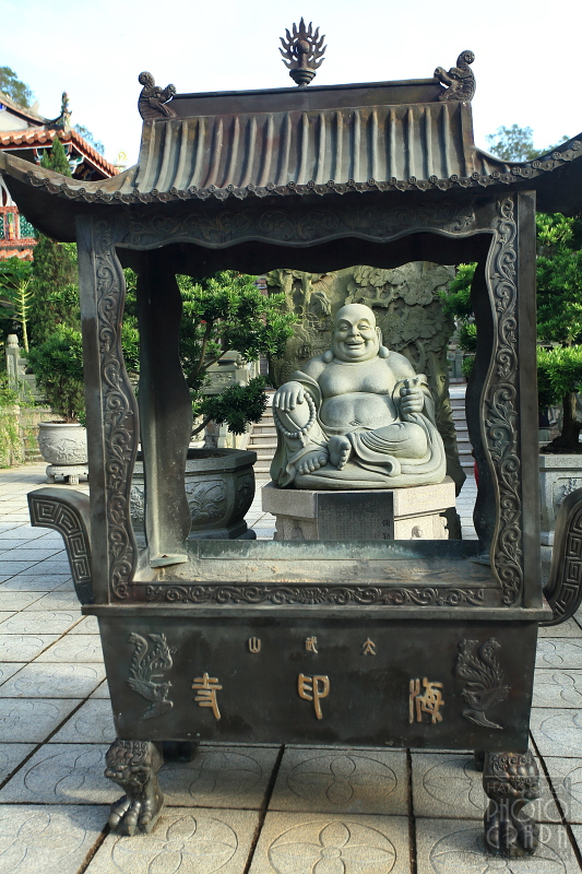 據說左手按心,右手撫石,就可達心安祈福之效,我當然也要來試一下囉。(希望天天都能像這尊佛像一樣,開心過日子呀!)