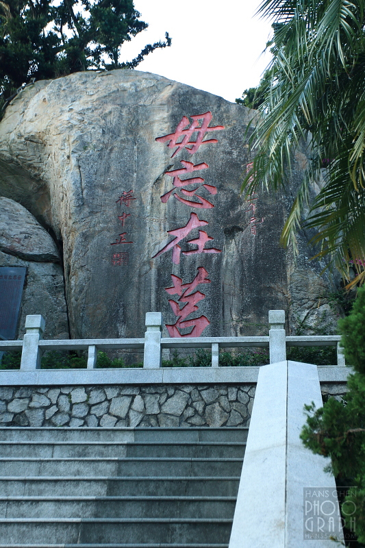 海印寺的參訪就到這裡告一個段落。我在這裡待了蠻久一段時間,正好奇為什麼團員伙伴們都還未到海印寺集合?(難道是我的腿力太好?),後來經由伙伴告知,才知道原來剛剛古道出口處,柏油路往上走一點點,就可以到達金門的知名地標「毋忘在莒」的石碑。
