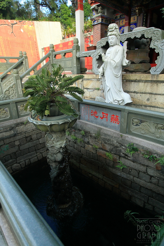 往裡走一些,這觀音像前的池塘,是十二景中的泉奇「蘸月池」。