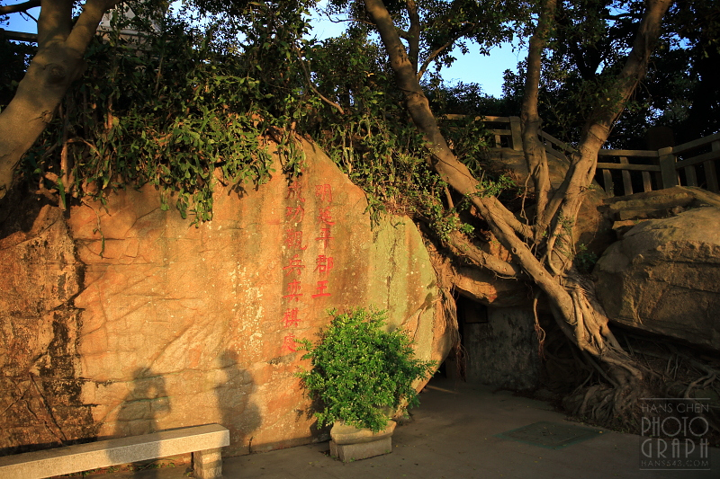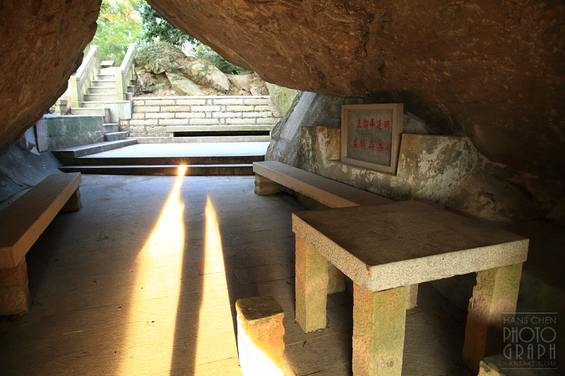往後一看,可以看到太武山古十二奇的幽奇「古石室」,這裡據說是明朝延平郡王鄭成功觀兵奕棋處。能在這樣優美的景色中下棋觀棋,真是快活的一件事呀。