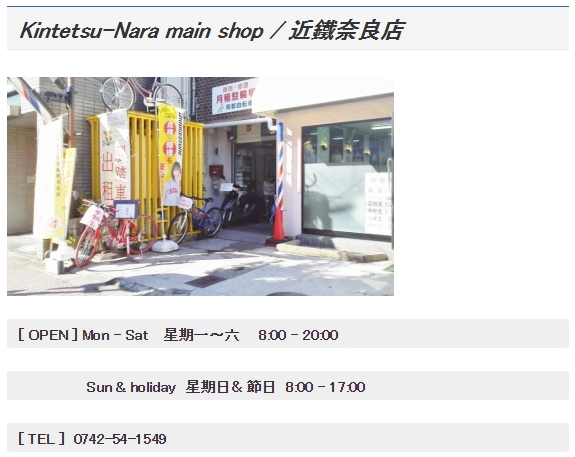 (官網連結:ヤマト観光レンタサイクル 近鉄奈良店)