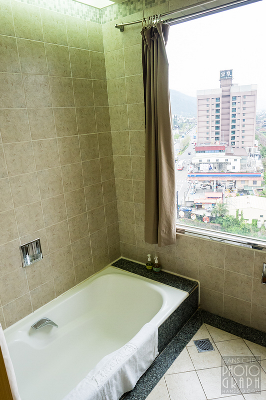 比較特別的是這個降板式的浴缸,泡溫泉時可以「走入浴池」,感覺很不錯。
