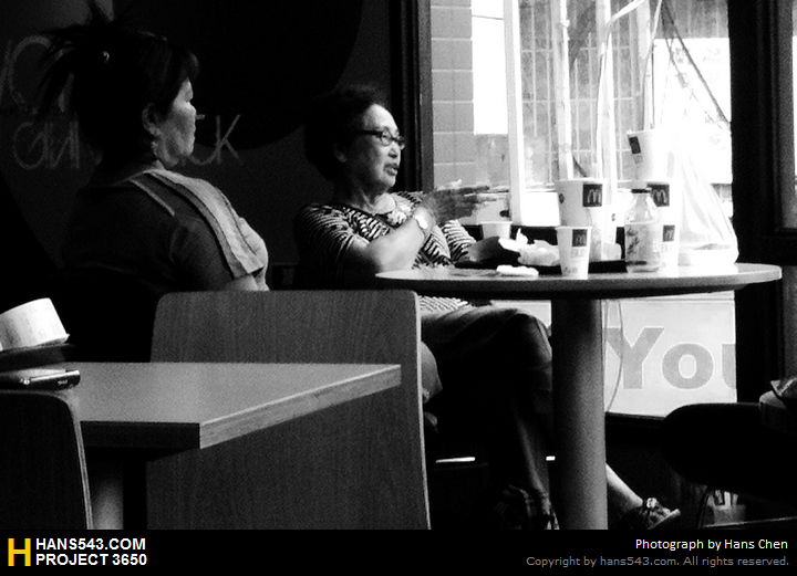 中午翰斯在麥當當吃飯,遠方坐著兩位大嗓門的婆婆,
