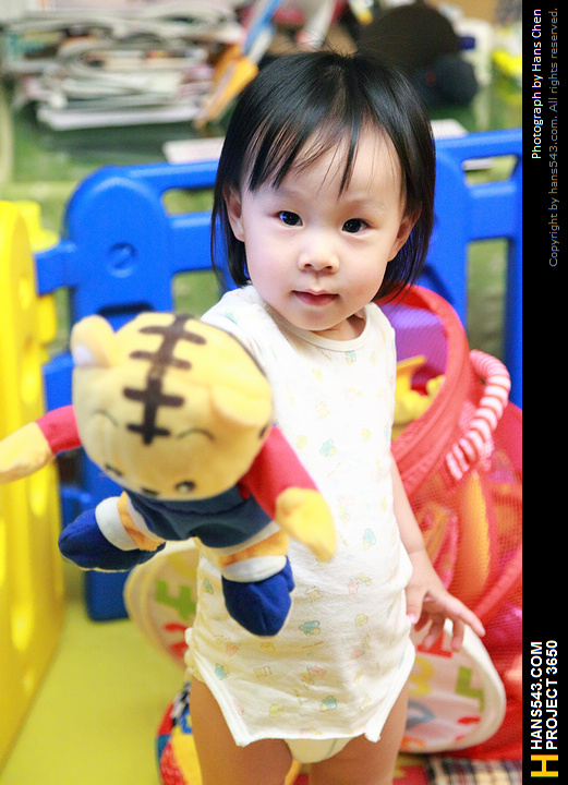 連以往我們扮巧虎玩偶逗她玩的小技倆,也被她破解了~