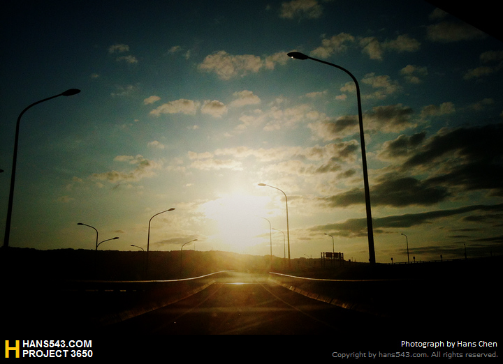 看到溫暖的陽光灑在快速道路上,變成了一條金黃大道~