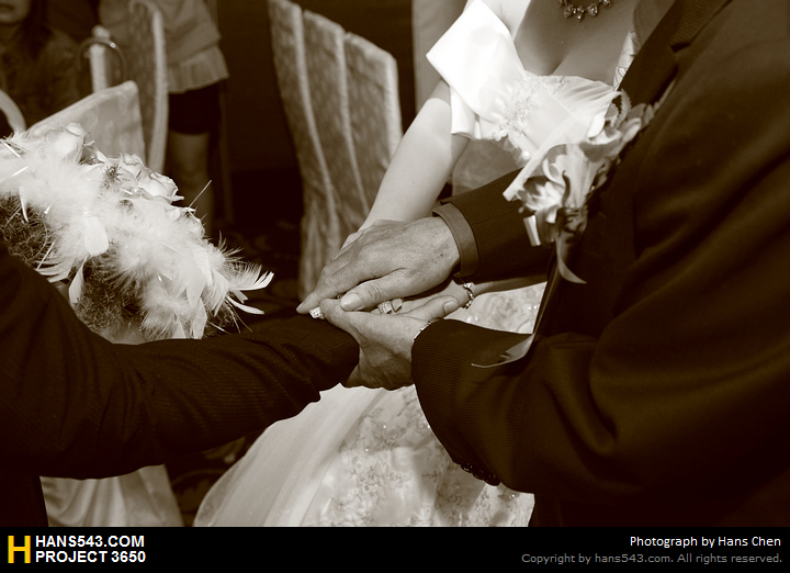 在中午的婚禮攝影中,看到老丈人在新人進場,將新娘的手交給新郎時,