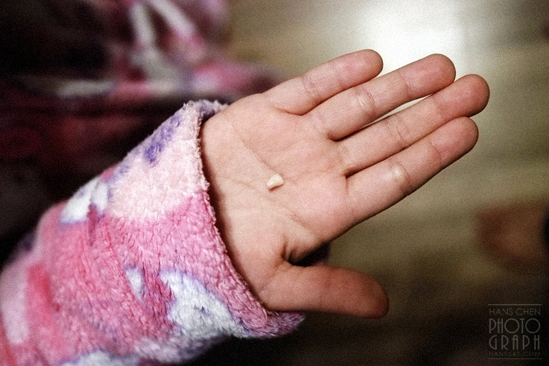 其實會有一點點擔心她門牙生長的進度,雖然去年九月掉的下排牙齒已長出來,但去年十一月掉的上門牙,現在還是只有一點點白白的探出頭,還沒長出來呢!(是的,她已經說話會漏風很久了XD)這樣的速度真的正常嗎?