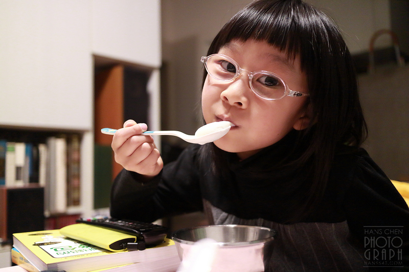 甜甜的湯圓是小朋友的最愛之一,雙比當然也是舉雙手讚成。不過現在兩顆上門牙都掉了的Q比,要咬斷湯圓真是一件辛苦的事,只能利用側邊的虎牙來咬湯圓,就像照片這樣XD