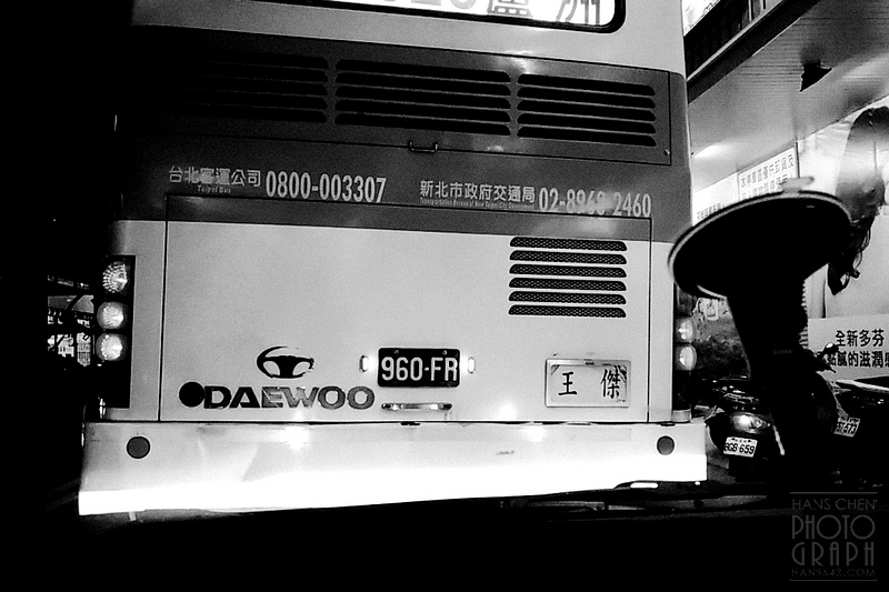 晚上開車回家時,轉個彎,跟在公車後頭,剛好它停下來載客,單線道的馬路,我也只能停在後頭安份的等侯著。突然間,眼睛一亮!