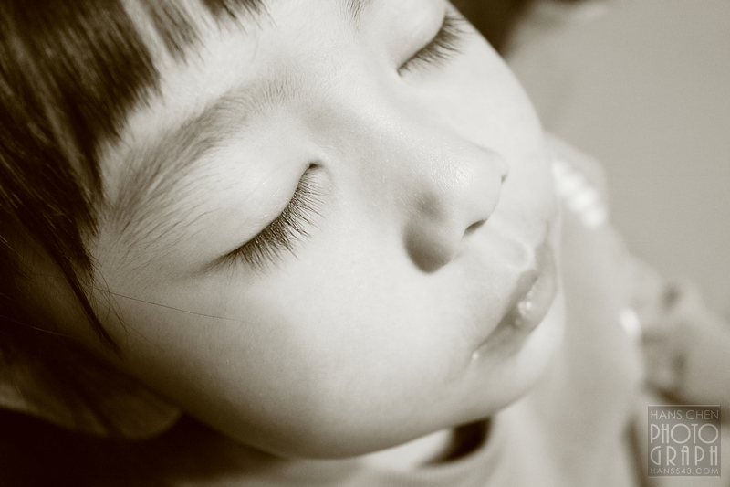 低頭一看,哇!妹妹的眼睫毛真是長又翹啊!當下請她閉上眼睛,幫她拍一張。
