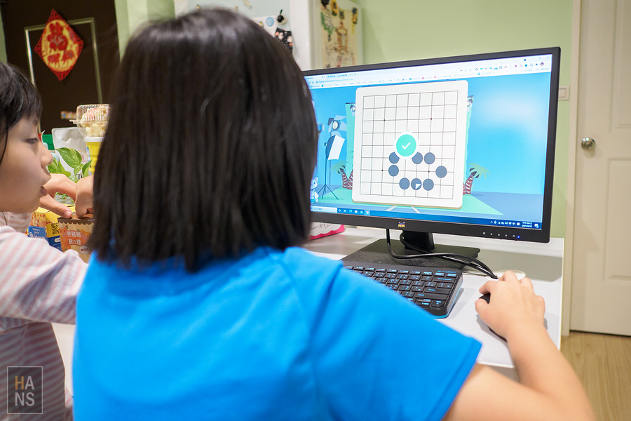 這線上學圍棋的設計還蠻不錯的,講解完直接搭配簡易的與電腦對奕模式,了解每個招式的內容,雙比學得非常專心且有興趣。