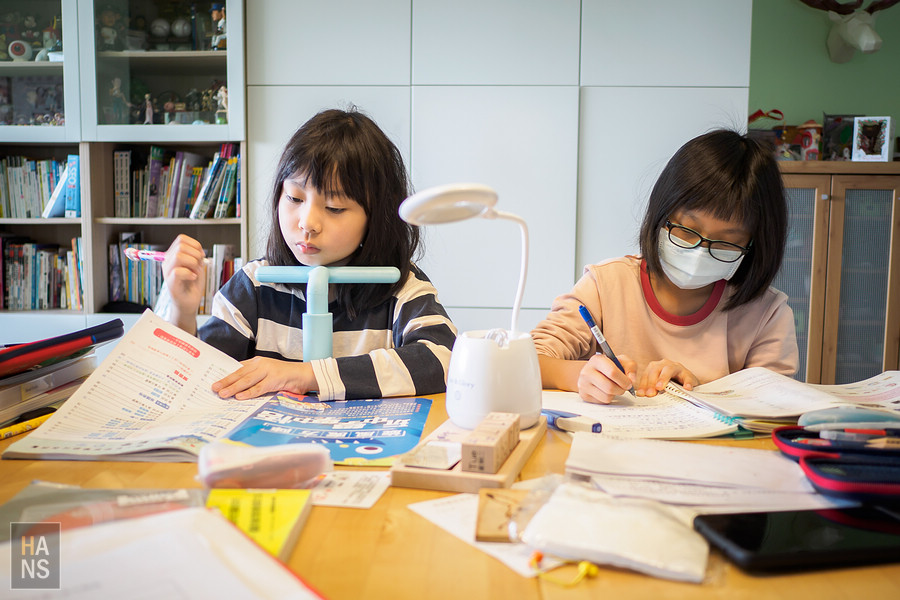 晚上家用電話一響起,雙比就很有默契的互相使了個眼色,一個人去接電話,一個人去拿英文課後班的課本。接下來妹妹先用怯生生的語氣,小小聲的用英文回答著,遠端英文老師所提出的問題。