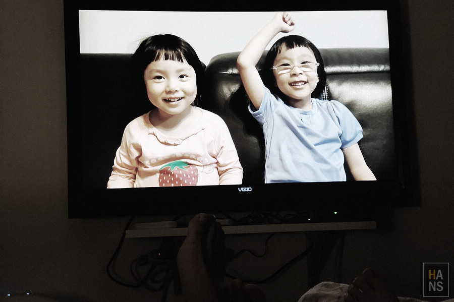 因為新 NAS 整理到一個階段,可以直接用電視選看影片(其實之前也是可以,不過是用檔案總管的方式連到 NAS 上看影片照片),直觀了不少( S 家的 video station 還可以自動去抓 imdb 上的電影、電視劇資訊,只要改對檔名,就可以自動套上資訊以及封面照片,真的很不錯),家庭影片也可以直接觀看,晚上在房間裡和比媽一起回味,蠻有趣的。