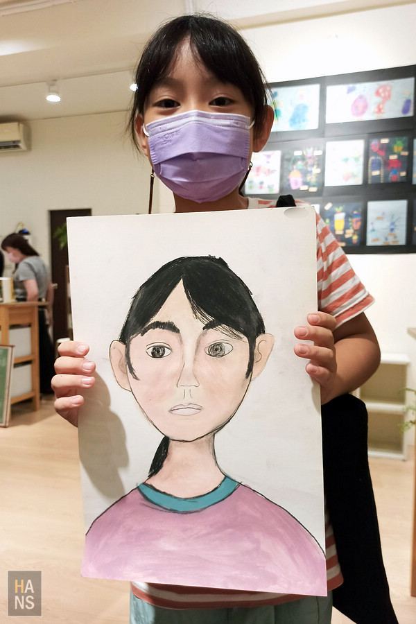 看到作品,覺得好欣慰,終於不是畫那種倒三角型的臉和正三角型身體的小公主畫像(美比一直以來所畫的人物,大都長那樣😆),而是比較接近真人的外貌了。而且,神情還真的和她蠻像的,嗯嗯,不錯不錯!(當下請比媽幫我大力讚賞她一下)