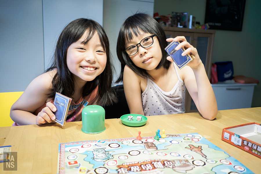這個桌遊是「世界奇觀的故事」,在遊玩的過程中,還需要回答卡片上關於世界奇觀的問題(艾菲爾鐵塔、帕得嫩神廟、萬里長城、吳哥窟等等,很多答案連我也不知道,算是寓教於樂的遊戲)才有辦法得分,小朋友只要拿到前面的名次,就好開心呀!
