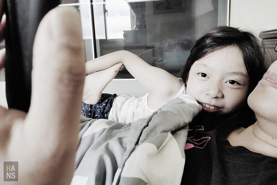 一早,早起的美比又衝進我們房間,撲上我們的床,開始黏著我們撒嬌。有時偷看我們手機裡的東西,有時說不好笑的笑話給我們聽(我們有配合笑一下🤣),有時找我們聊天,有時又故意引我們哈她癢(然後自己尖叫笑呵呵)。總之,就是很喜歡黏著我們就對了😆