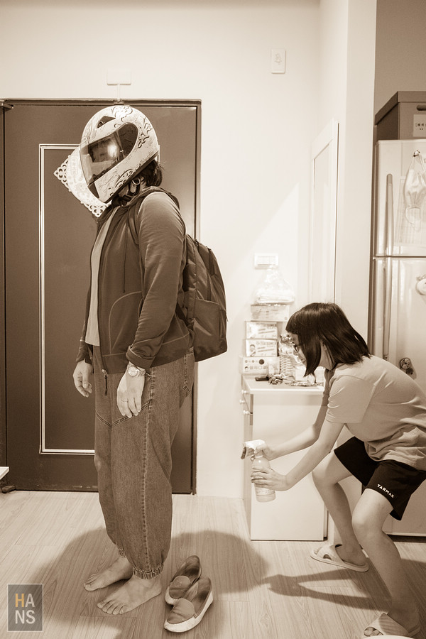 小朋友其實很敏感,也很聰明的。吃飯時跟著聽新聞,也了解疫情的嚴重性,此次病毒的高散播性,所以只要我們偶爾到辨公室上班(雖說是 WFH 居多,但偶爾也要到辦公室一趟),一回家雙比就會先幫我們消毒(做得很頂臻,除了噴我們的手、身體之外,還會去噴我們摸過的手把,連外頭大門的門把也會開鐵門來噴),然後大人就直接去洗澡,這才完成回到家的準備動作。